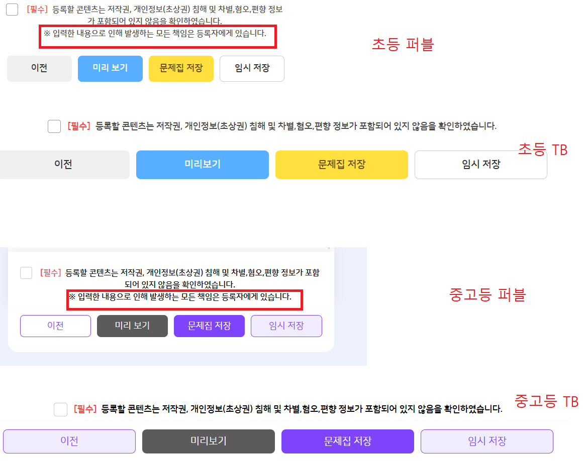 | Description | 직접 문항 저장 단계에서 필수 문구가 누락되어 있는 현상(초중고) | ||||