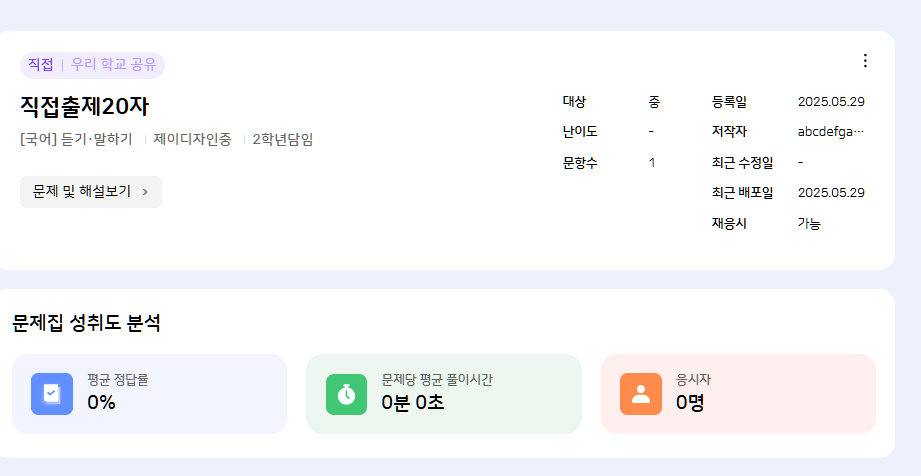 | Description | 문제집(직접출제) 상세 페이지 - 저작자 말줄임표 적용 안됨 | ||||