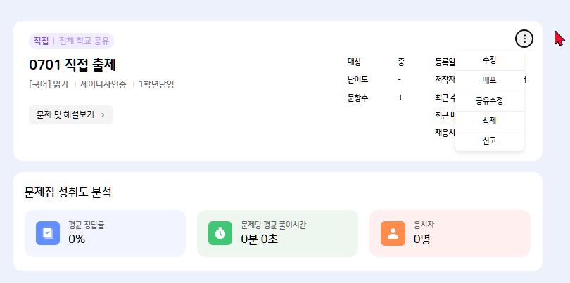 | Steps To Reproduce | 1. 교사 로그인 2. 직접 문항 상세 > 더보기 버튼 | ||||