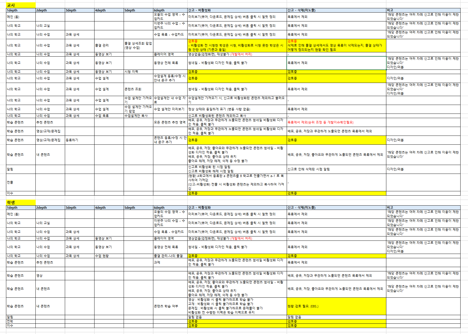 | Description | 250612 신고_처리_화면리스트_v0.3 (1).xlsx 반영된 기획서 요청드립니다. *콘텐츠 신고 검증 시 필요 현재(6/25) 검증팀에서 갖고 있는 가장 최신 기획서 mypage : 6/2 contents : 5/21 플랫폼관리자 : 5/28 학교관리자 : 6/12 | ||||