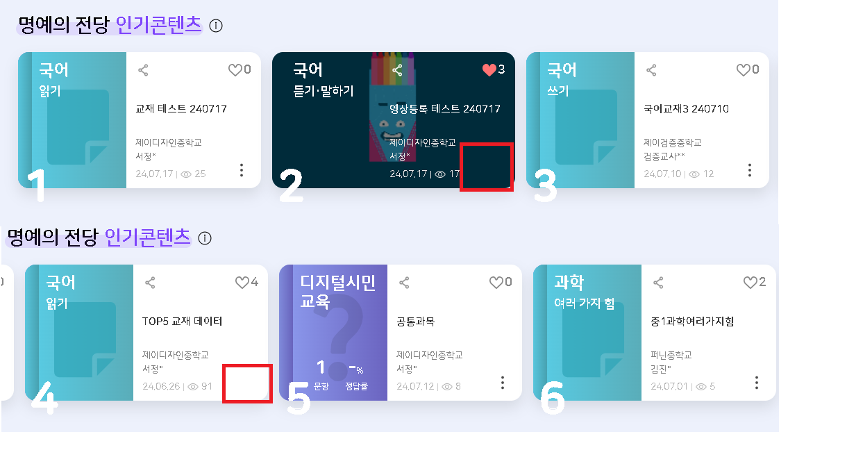 | Steps To Reproduce | 1. 교사로그인 2. 학습콘텐츠>추천콘텐츠 3.명예의 전당 인기콘텐츠 | ||||