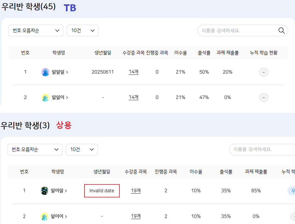 | Description | 교사 > 나의 교실 > 우리반 학생 > 생년월일 오류 | ||||