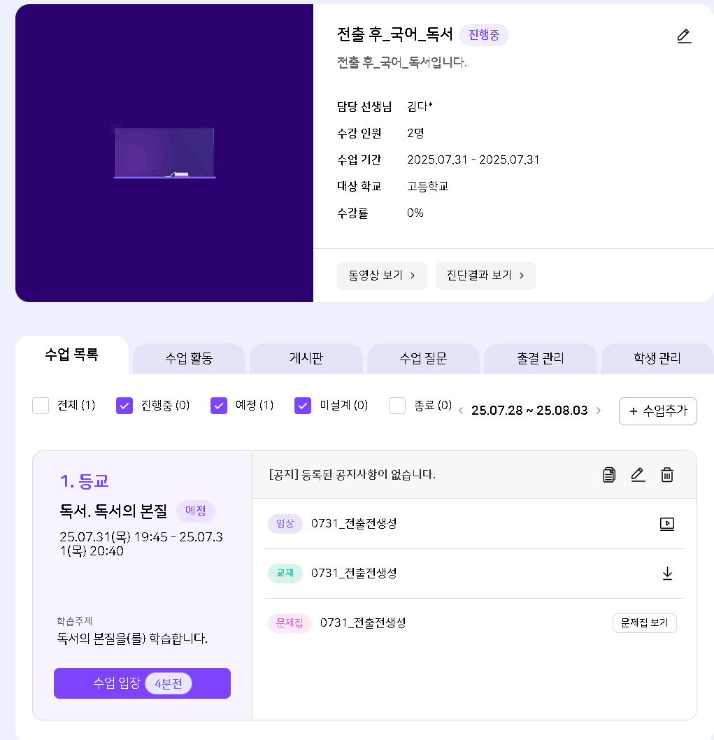 | 2025-08-04 02:16 | 김소원 | Project | 온라인 학교 => 하이러닝 |