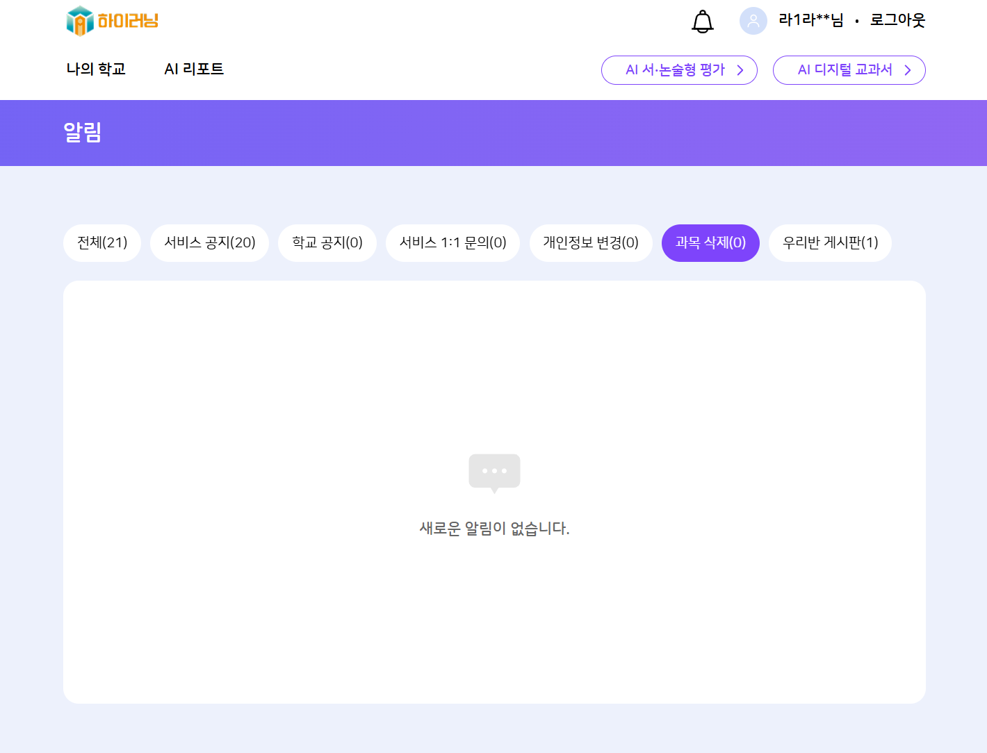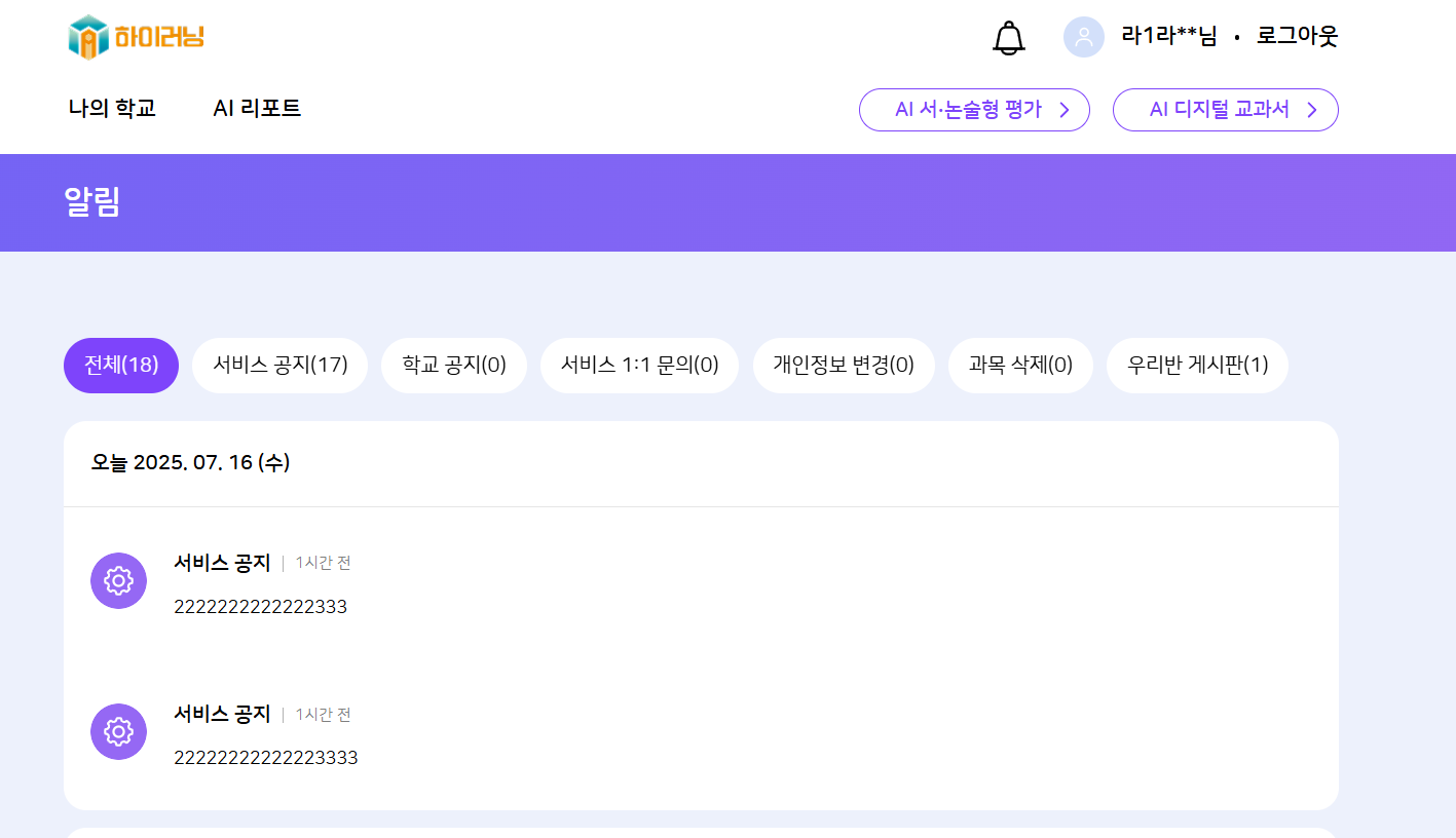 | 2025-07-16 02:45 | 이세희 | Project | 하이러닝 => 온라인 학교 |