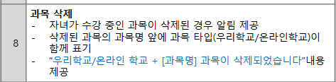 | Summary | 0001188: 교사가 과목 삭제 시, 학무모 알림 > 과목 삭제 탭에 노출되지 않는 현상 | ||||