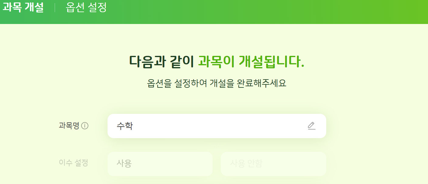 | Steps To Reproduce | 1. 교사 로그인 2. 과목 개설 -> 온라인 학교 3. 이수 설정 확인 | ||||