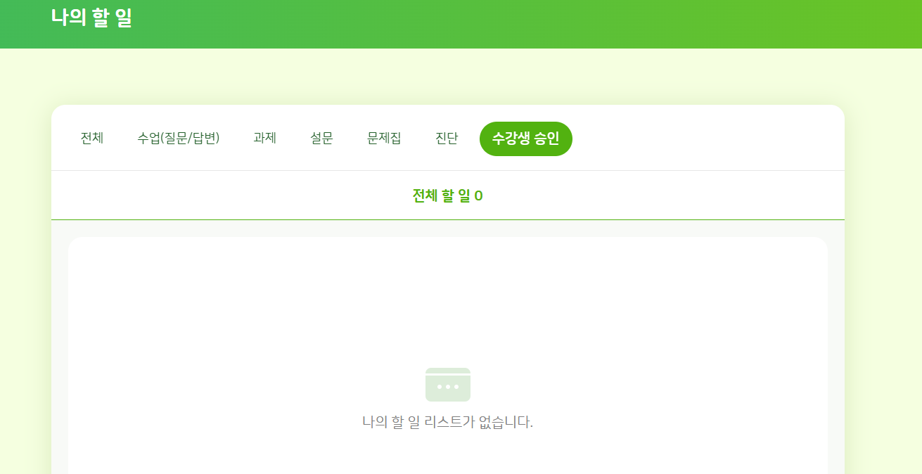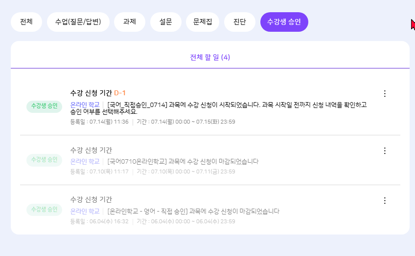| Description | 교사의 나의 나의 할일 > 수강생 승인 탭에 미노출되는 현상 | ||||