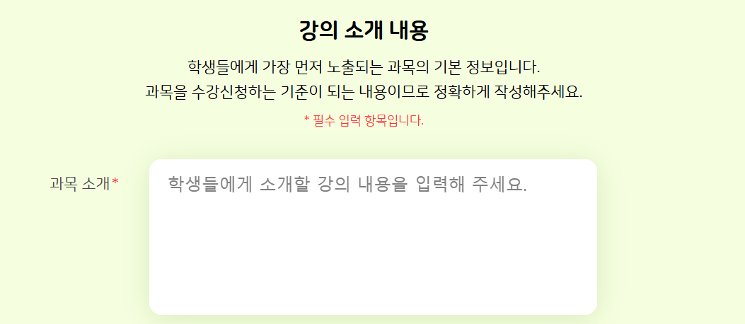 | Steps To Reproduce | 1. 교사 로그인 2. 과목 개설 > 과목 소개에 탭/빈칸/엔터만 입력 | ||||