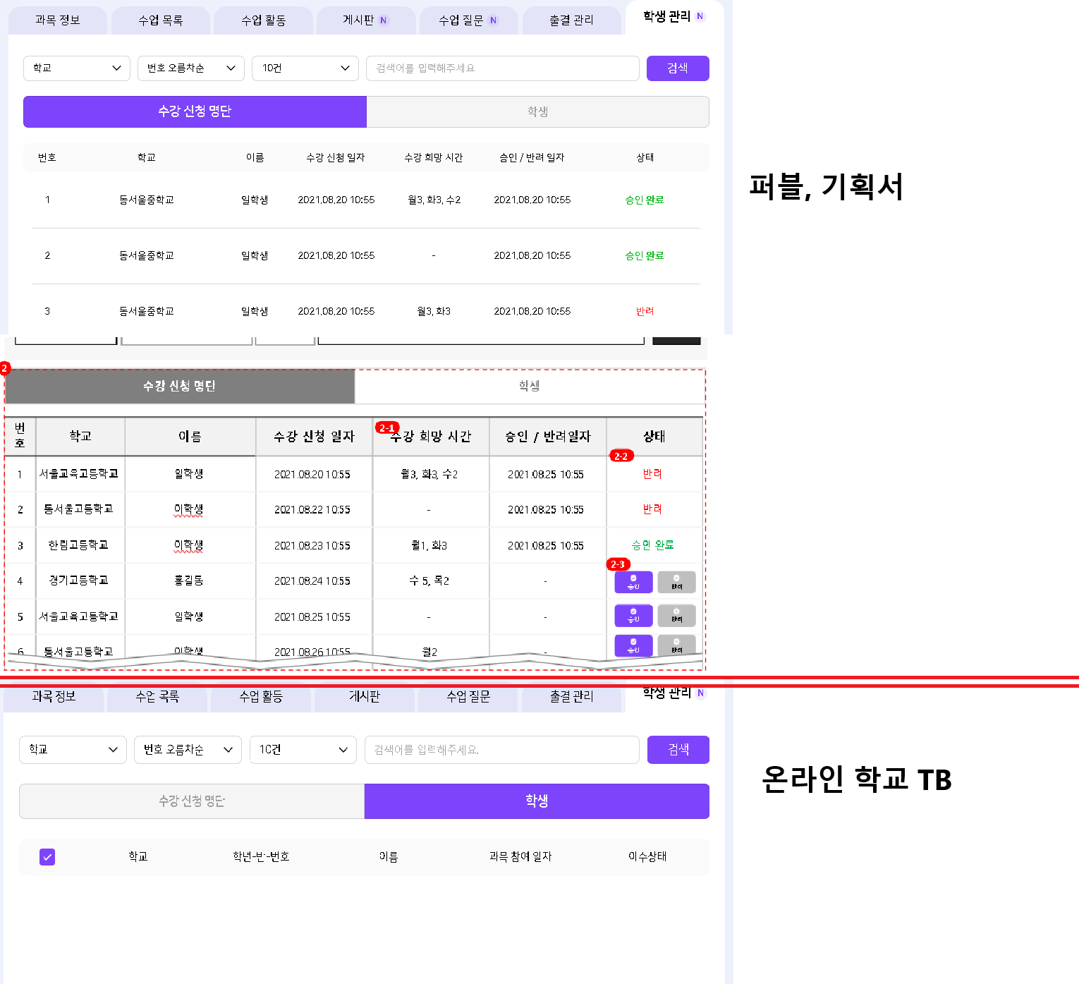 | Description | 온라인 학교의 과목 상세 - 학생 관리 탭 진입시 '학생'이 디폴트로 노출 기대결과 : '수강 신청 명단'이 디폴트로 노출 | ||||