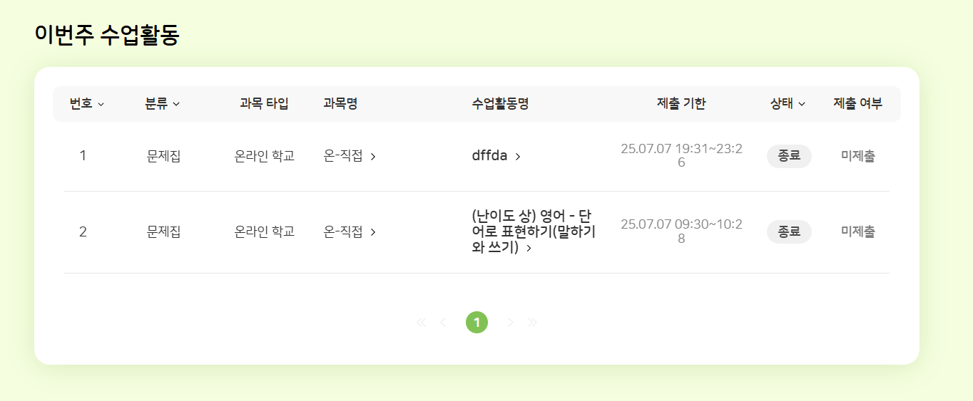 | Steps To Reproduce | 1. 학생 로그인 2. 나의 학교 > 나의 교실 > 이번주 수업활동 | ||||