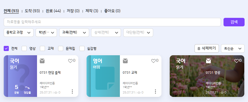 상용 - 진행중 온라인교실에 영상, 교재, 문항 배포 및 학생 내콘텐츠 노출 확인 |