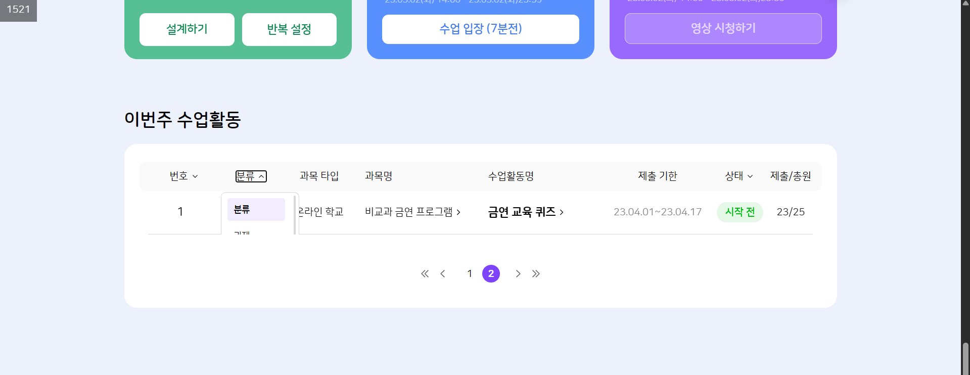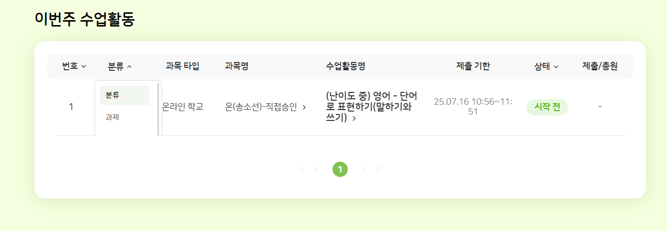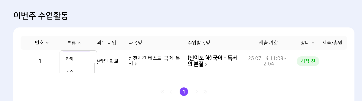| Steps To Reproduce | 1. 나의 학교 > 나의 교실 > 이번주 수업활동 2. 분류 필터 클릭 | ||||