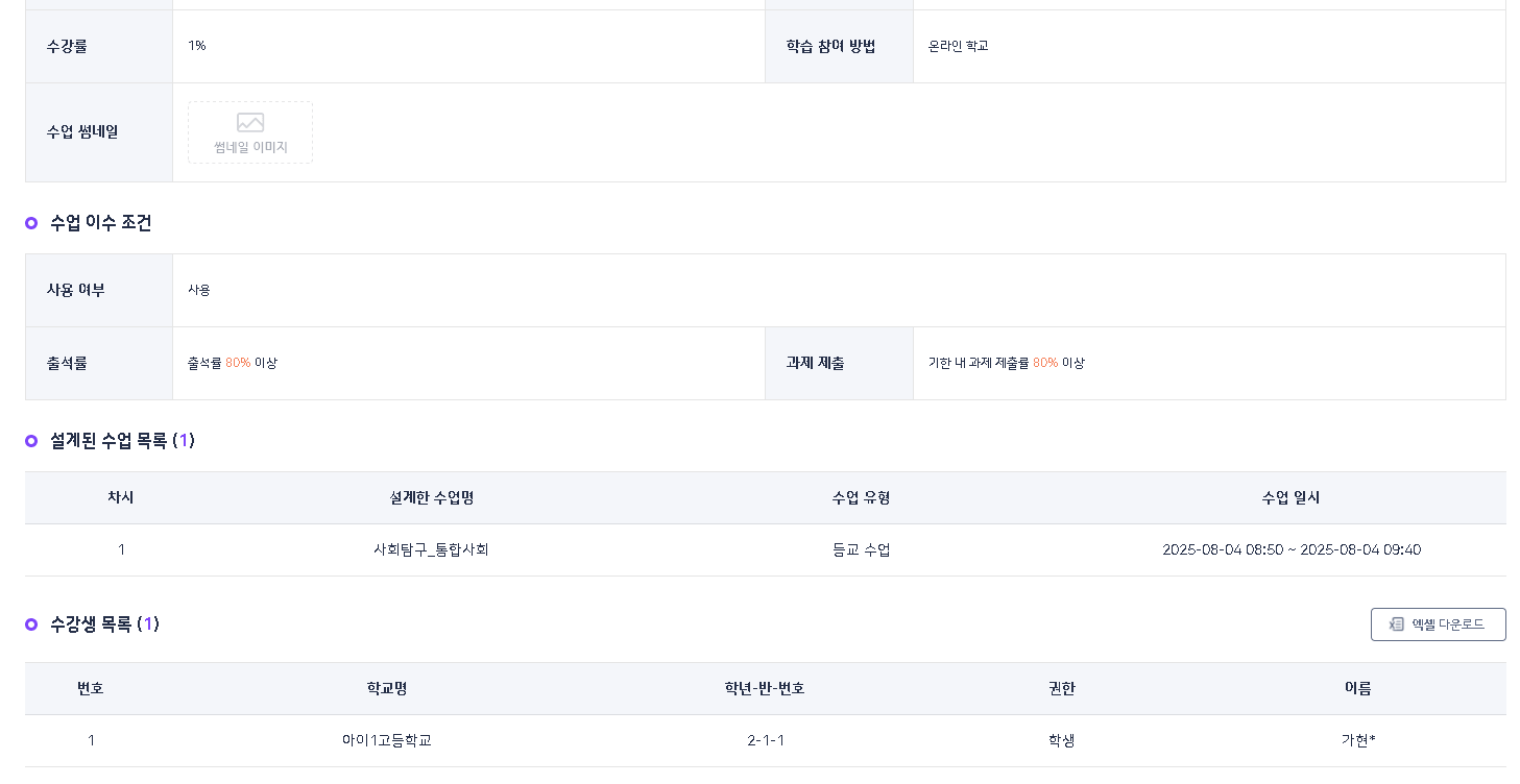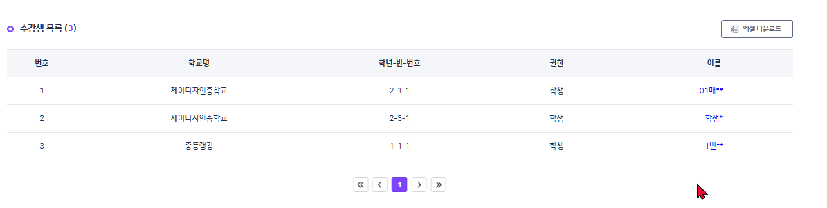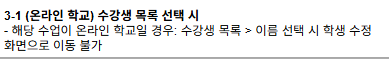 온라인 학교 과목의 경우에는 수강생 목록 내 이름 링크 디자인 삭제, 상세페이지 이동 막는 것으로 부탁드립니다. |