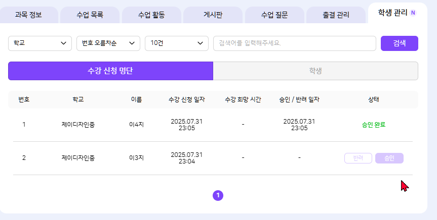 | Steps To Reproduce | 1. 교사 로그인 2. 종료된 과목 > 학생 관리 > 수강 신청 명단 | ||||