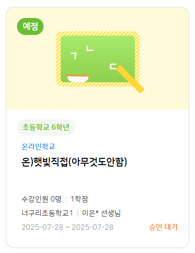 | 2025-07-18 09:27 | 이세희 | Summary | 전학가기 전에 승인된 과목이 전학간 후에 노출되지 않는 현상(교사/학생) => (★기획 문의)전학가기 전에 승인된 과목이 전학간 후에 노출되지 않는 현상(교사/학생) |