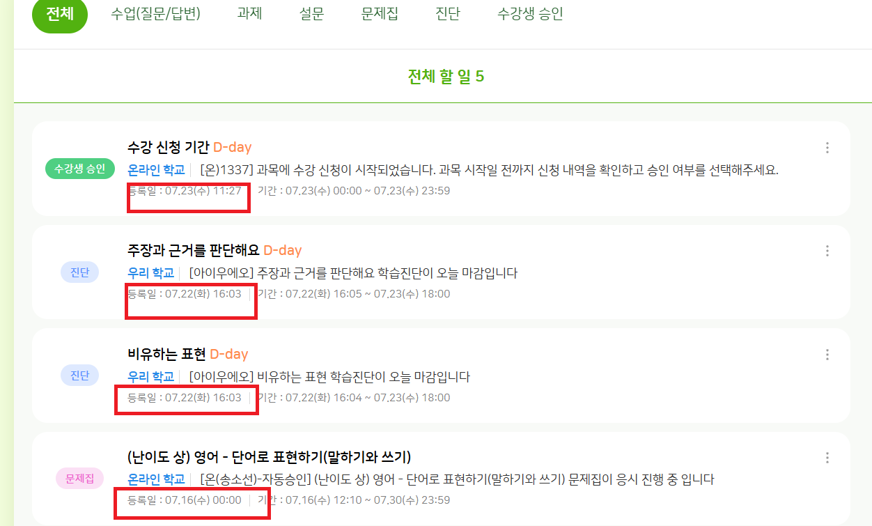 | Description | 모바일에서 교사 > 나의 할 일이 최신순으로 정렬되지 않는 현상 *pc는 정상 노출 | ||||