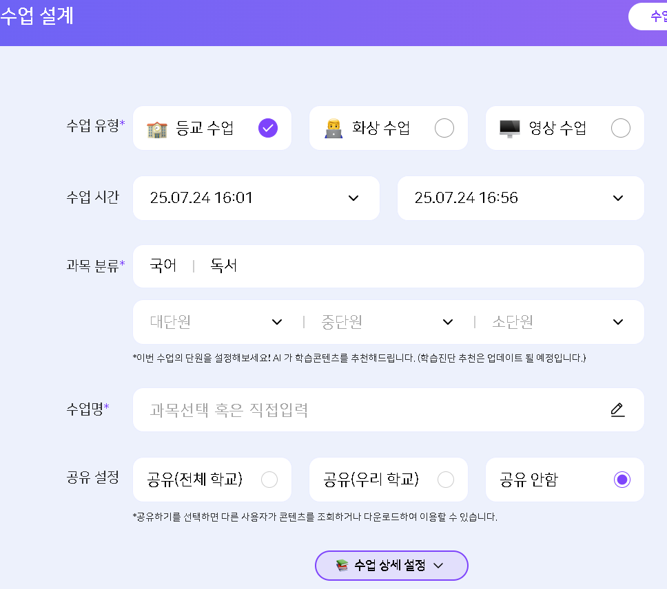| Description | 온라인 학교로 수업 설계 시 공유 설정 디폴트가 '전체 학교' 공유로 설정 | ||||