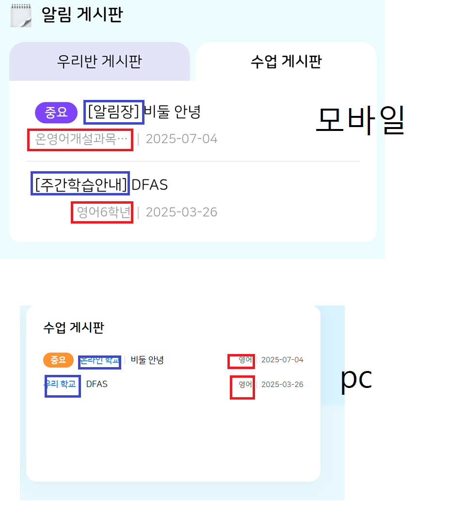 | Description | 모바일 - 메인 하단 수업 게시판이 pc와 다르게 노출 | ||||