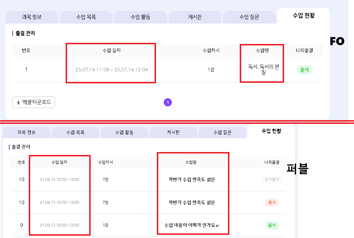 | Description | 중고등학생 - 수업현황에 수업일자와 수업명 간격 퍼블과 상이 | ||||