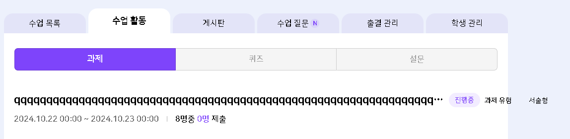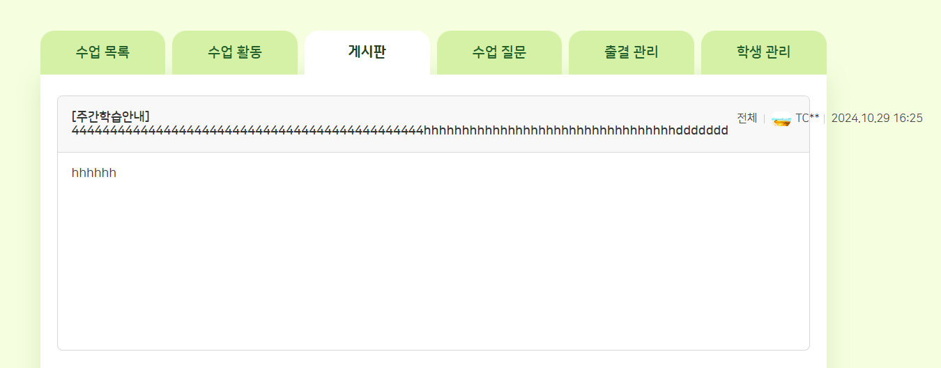| Description | 수업활동-과제, 게시판 등록시 영문, 숫자로 길게 작성할 경우 영역을 벗어나서 UI 깨지는 현상 발생 | ||||