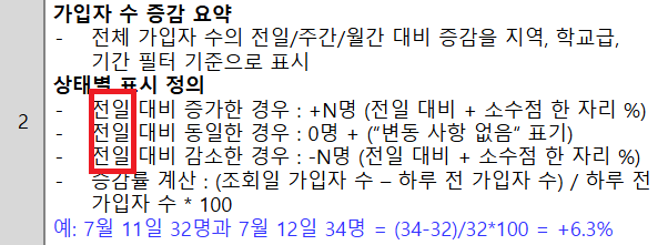 | 2025-07-28 08:19 | 이세희 | Summary | 플랫폼 BO 가입자 통계 - 가입자 수 증감 요약에 전주, 전월 대비에 대한 상태별 표시 정의 기획 문의 => (★기획 문의)플랫폼 BO 가입자 통계 - 가입자 수 증감 요약에 전주, 전월 대비에 대한 상태별 표시 정의 기획 문의 |