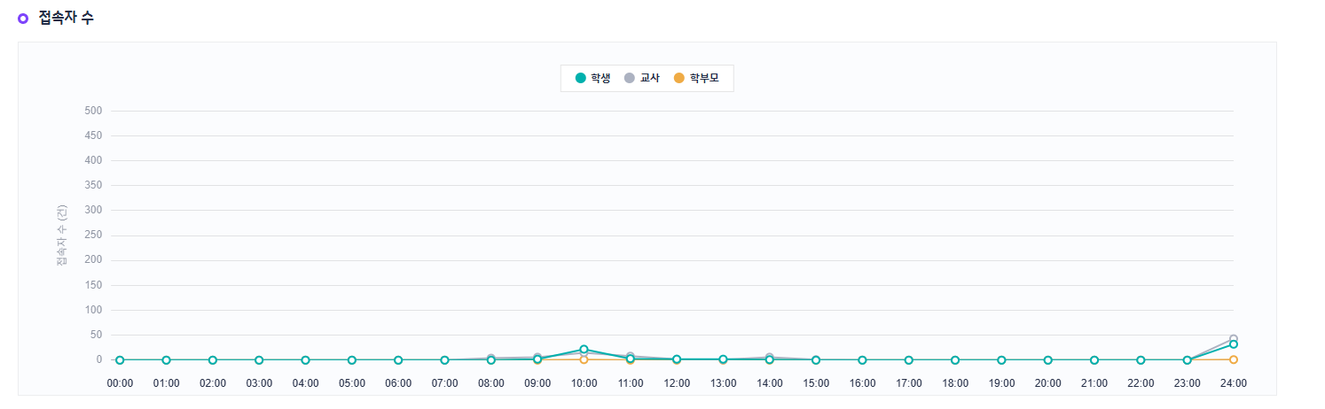 마우스 호버 시, 해당 차트의 시간, 학생 수, 교사 수, 학부모 수 툴팁 표시 |