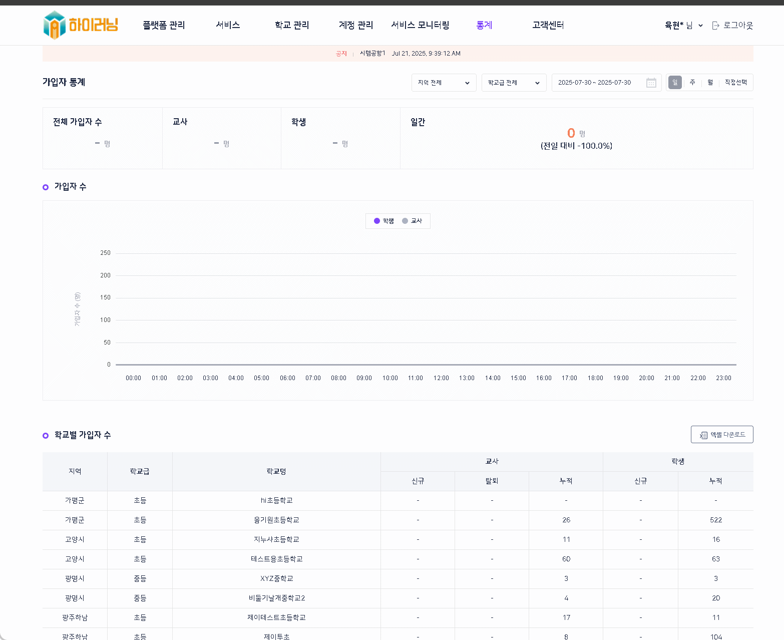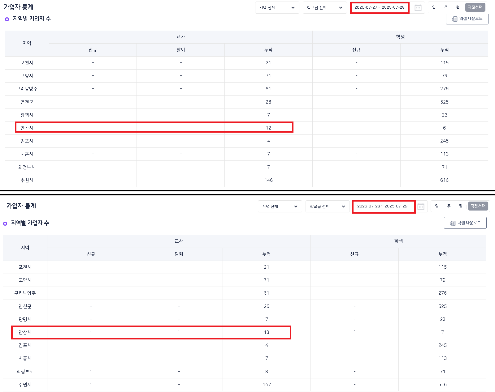 | Description | 플랫폼 BO - 가입자 통계 페이지 - 필터 기준 데이터 변동 안되는 현상 선택한 필터 기준 학교별 가입자 수, 지역별 가입자 수 숫자가 변동 되어야하나 고정되어 있는 현상입니다. | ||||