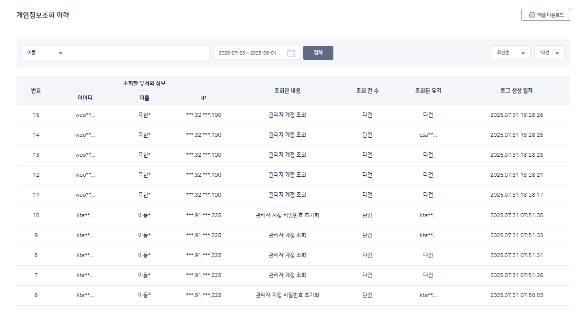 | Steps To Reproduce | 플랫폼 BO > 서비스 모니터링 > 개인정보조회 이력 >응시 | ||||