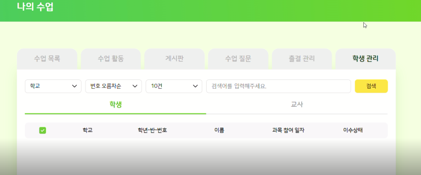 | Summary | 0001426: 직접승인 과목에 수강신청한 학생이 존재할 때, 교사가 학생 관리 탭 진입 시 일시적으로 학생/교사 탭이 노출되는 현상 | ||||