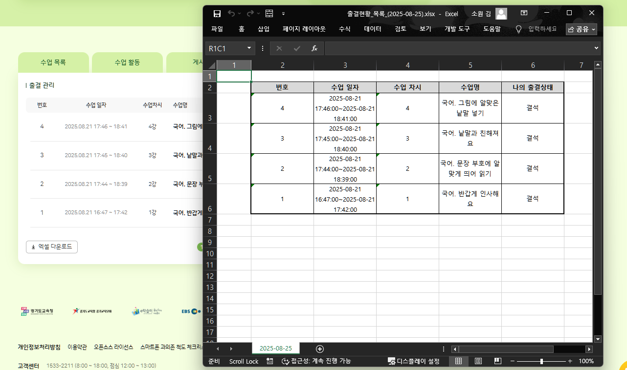 | Description | 초등학생의 수업 현황에 엑셀 다운로드 버튼 미노출 현상 *기획에는 노출된다고 쓰여져있음 (2025-08-01)_KT LanEdu_화면설계서_02.myclass_v.3.3.3 (1) p295 | ||||