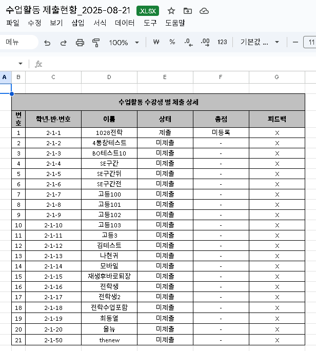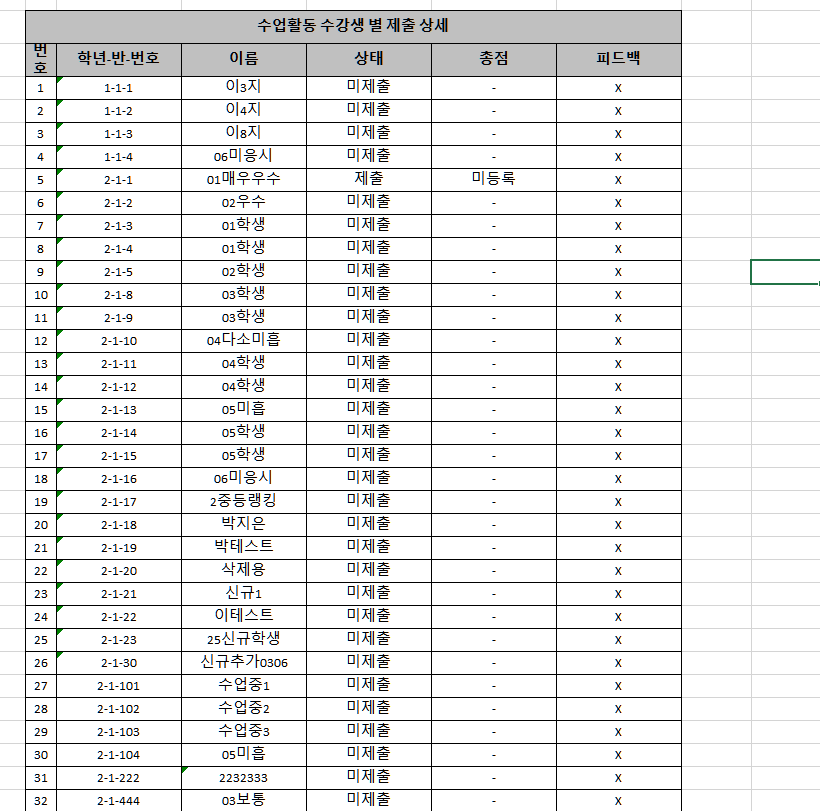 | Summary | 0001479: [VOC] 과목 - 수업 활동 - 과제 - 엑셀 다운로드, 다운로드 받은 파일 에러나는 현상 | ||||