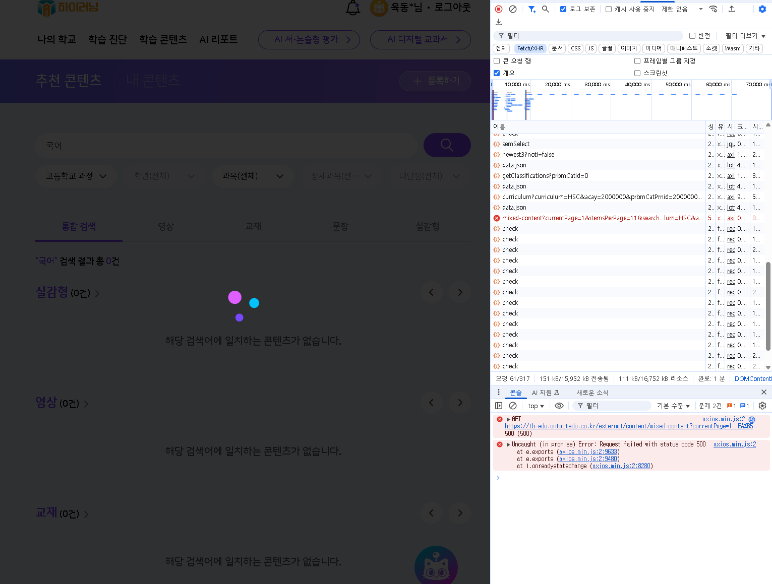 | Steps To Reproduce | 학습 콘텐츠 > 추천 콘텐츠 > 검색 > "국어" 검색 | ||||