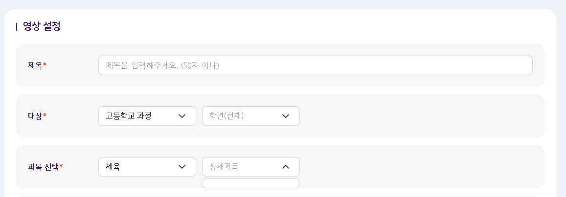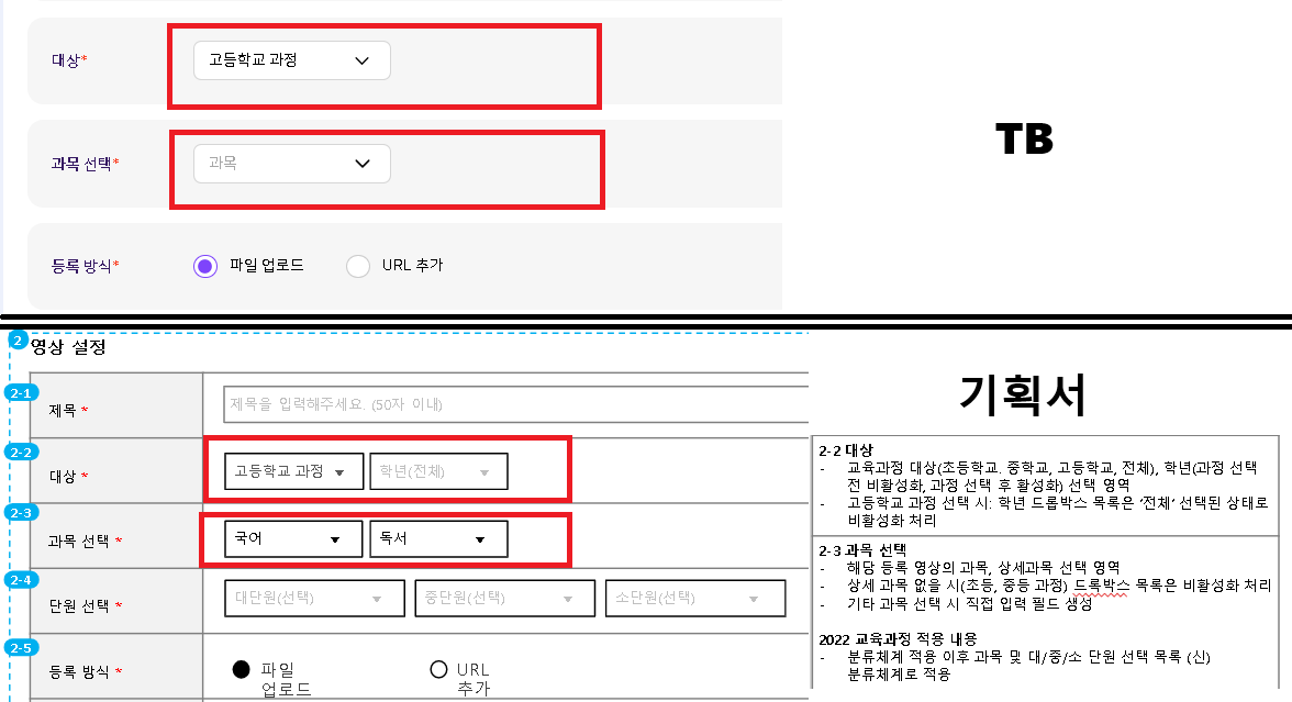 대상 - 학년, 과목 선택 - 상세과목 필터 부분도 수정이 필요하여 추가합니다. |