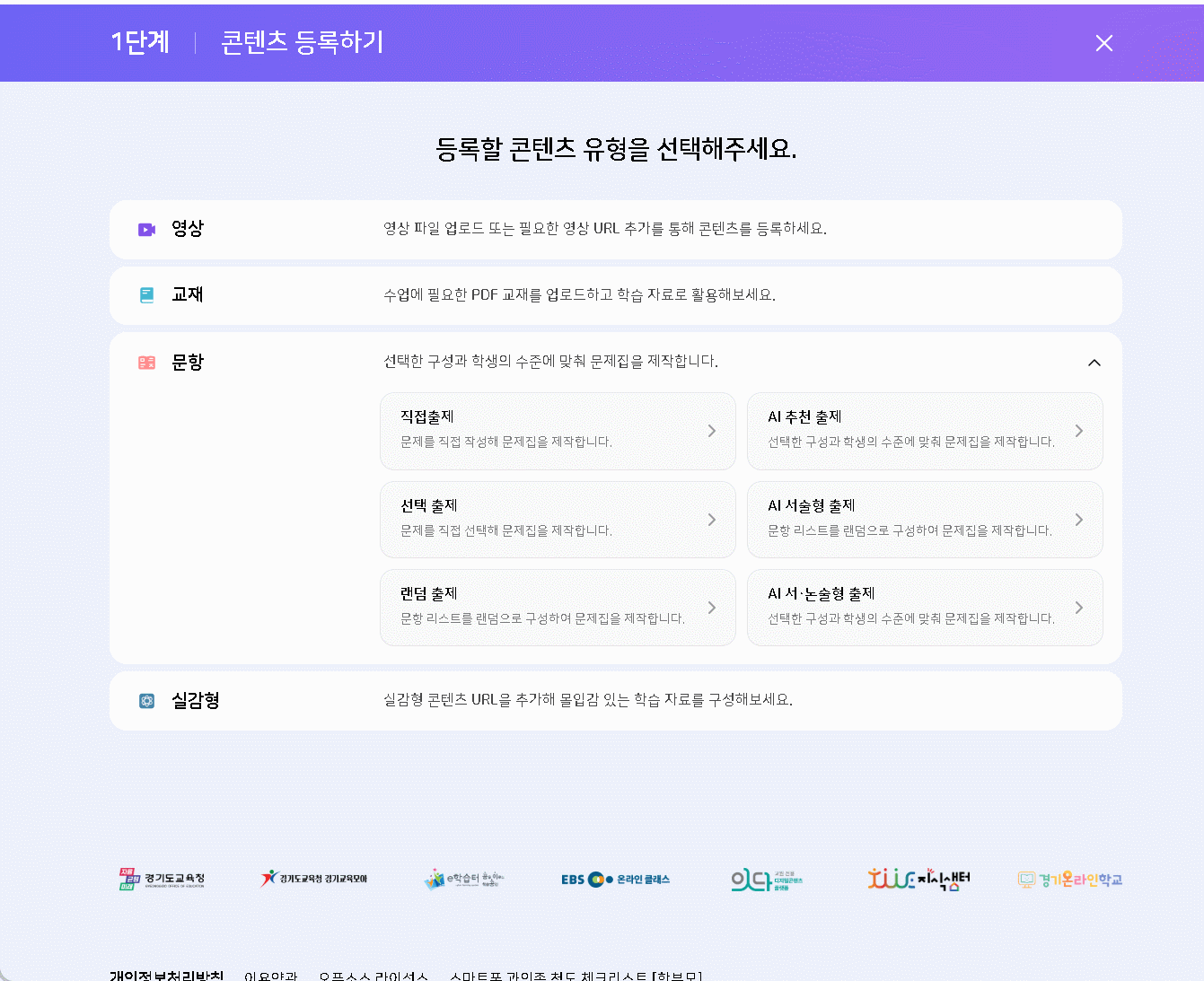 | Steps To Reproduce | 학습 콘텐츠 > 콘텐츠 등록 > 영상,교재,실감 클릭 > 화면 응시 | ||||