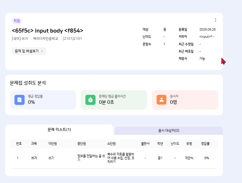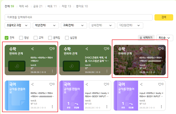 | Description | [VOC] 콘텐츠 제목, 내용, 디스크립션 등에 "<input>", "<body> " 포함 시 텍스트 전체가 암호화 되는 현상 [부분수정] 1. 문항 = TB 수정 확인 2. 영상 = 증상 재현 3. 교재 = 증상 재현 4. 실감형 = 증상 재현 | ||||