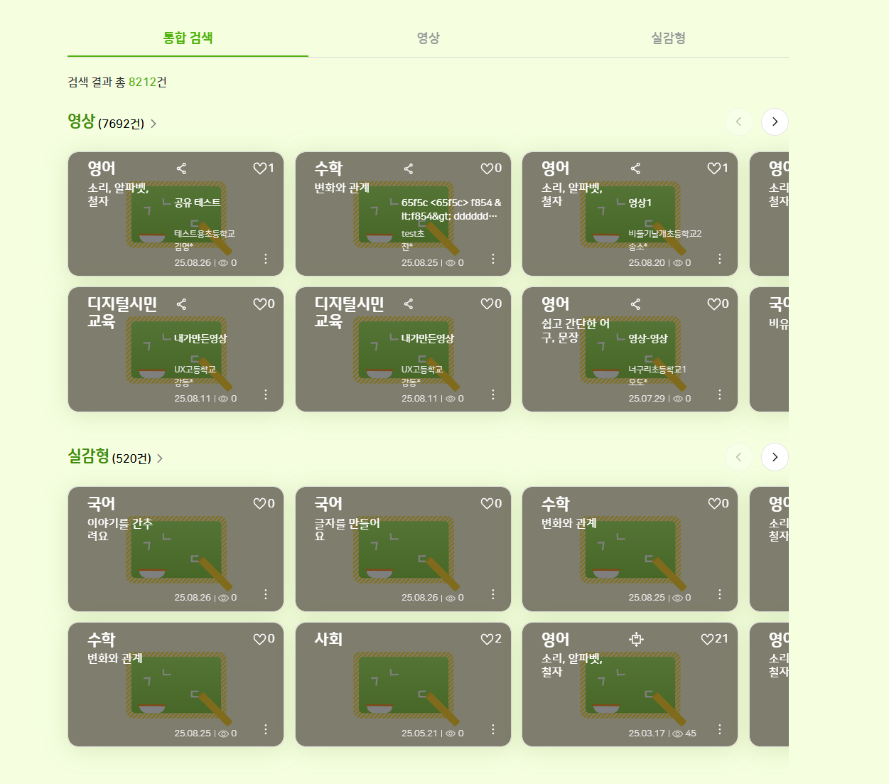 통합 검색 최초 진입 시 : 영상 7711건/실감형 0건 영상 탭 클릭 후 통합 검색 재진입 시 : 영상 7692건/실감형 520건 으로 노출되어 reopen 하겠습니다 |