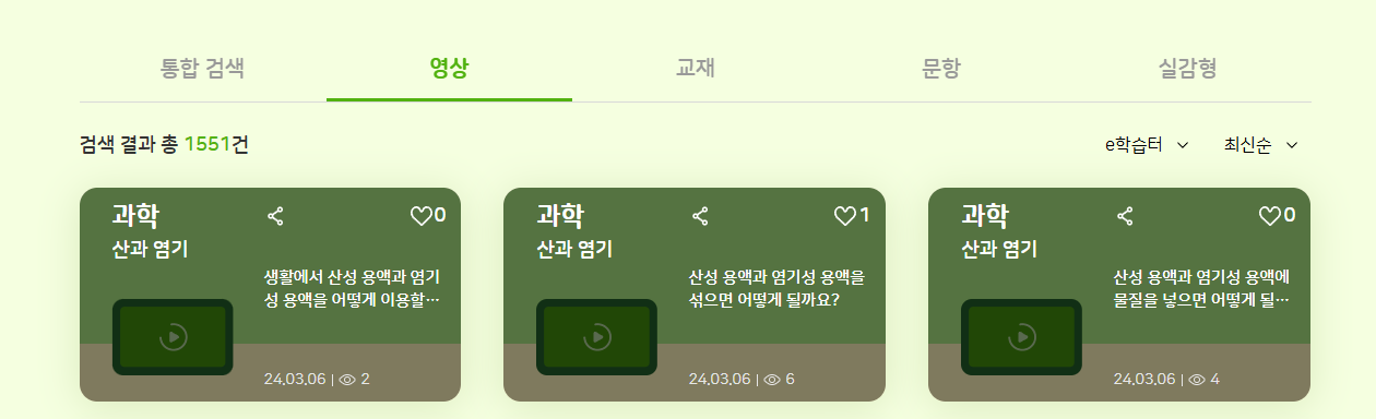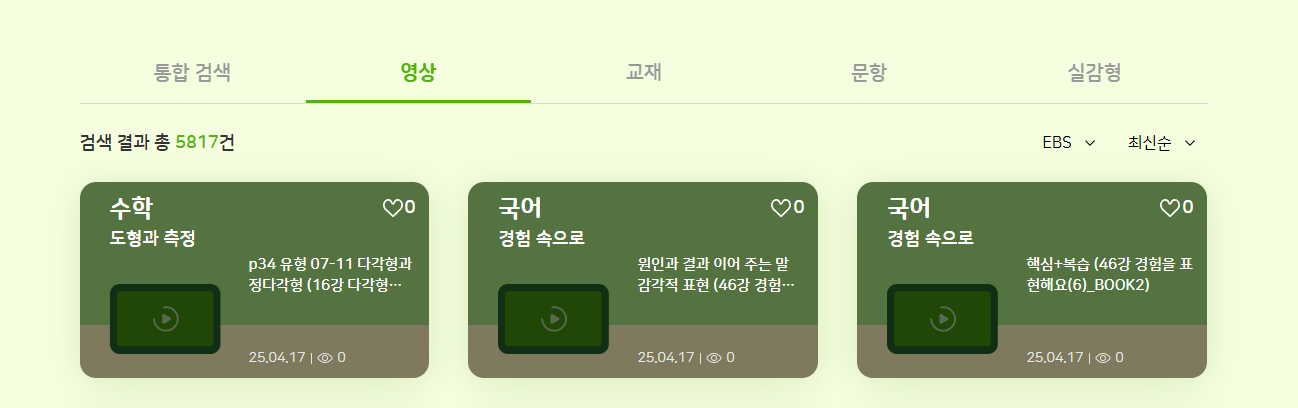 | Steps To Reproduce | 1. 교사 로그인 2. 학습 콘텐츠 > 추천 콘텐츠 > 영상 > EBS, e학습터, 경기도 교육청 | ||||