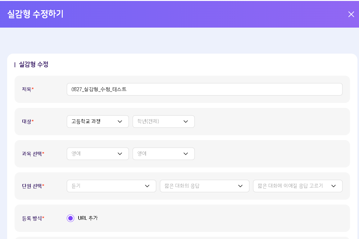 | Steps To Reproduce | 1. 교사 로그인 2. 학습 콘텐츠 > 실감형 등록 > 실감형 수정 | ||||