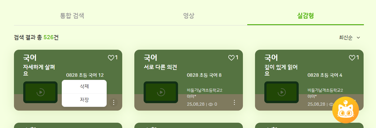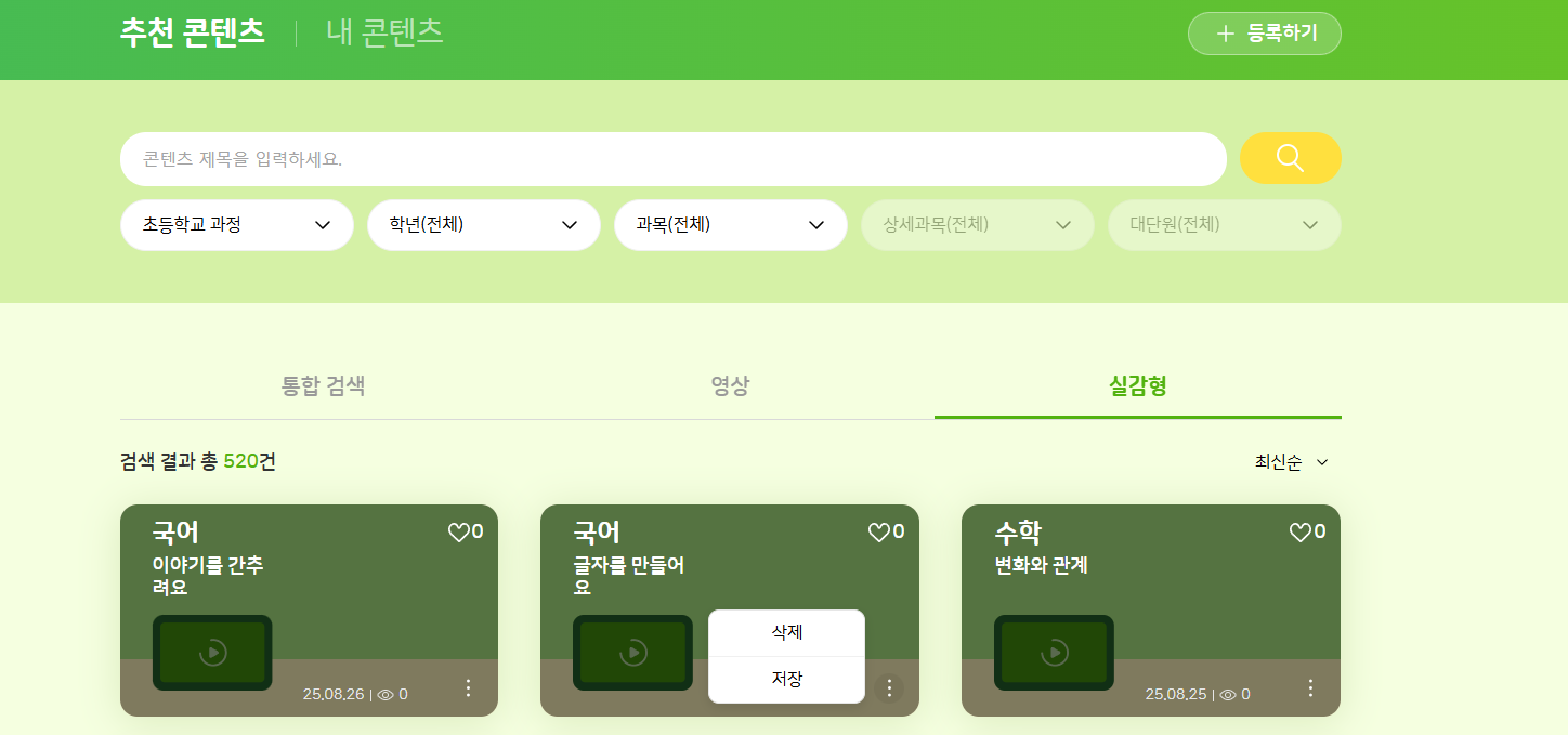 | Summary | 0001543: 학생 : 실감형 콘텐츠 더보기 버튼에 삭제가 노출되는 현상 | ||||