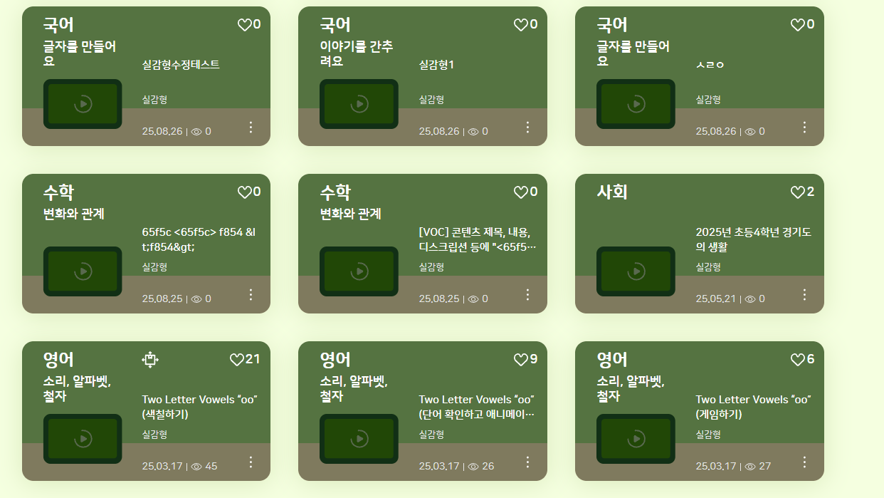 CP사 콘텐츠인 경우 CP사 명 교사가 등록한 콘텐츠인 경우 다른 콘텐츠들과 같이 교사의 학교명, 교사 명 노출되어야 합니다. |
