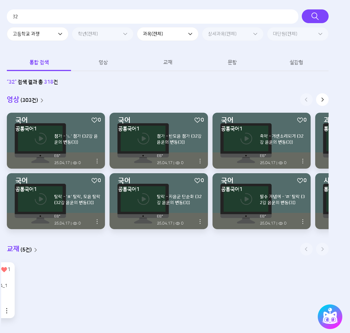 | Steps To Reproduce | 추천 콘텐츠 > 국어 검색 > 영상,교재,문항 옆으로 스와이프 > "32" 검색 > 화면 응시 | ||||