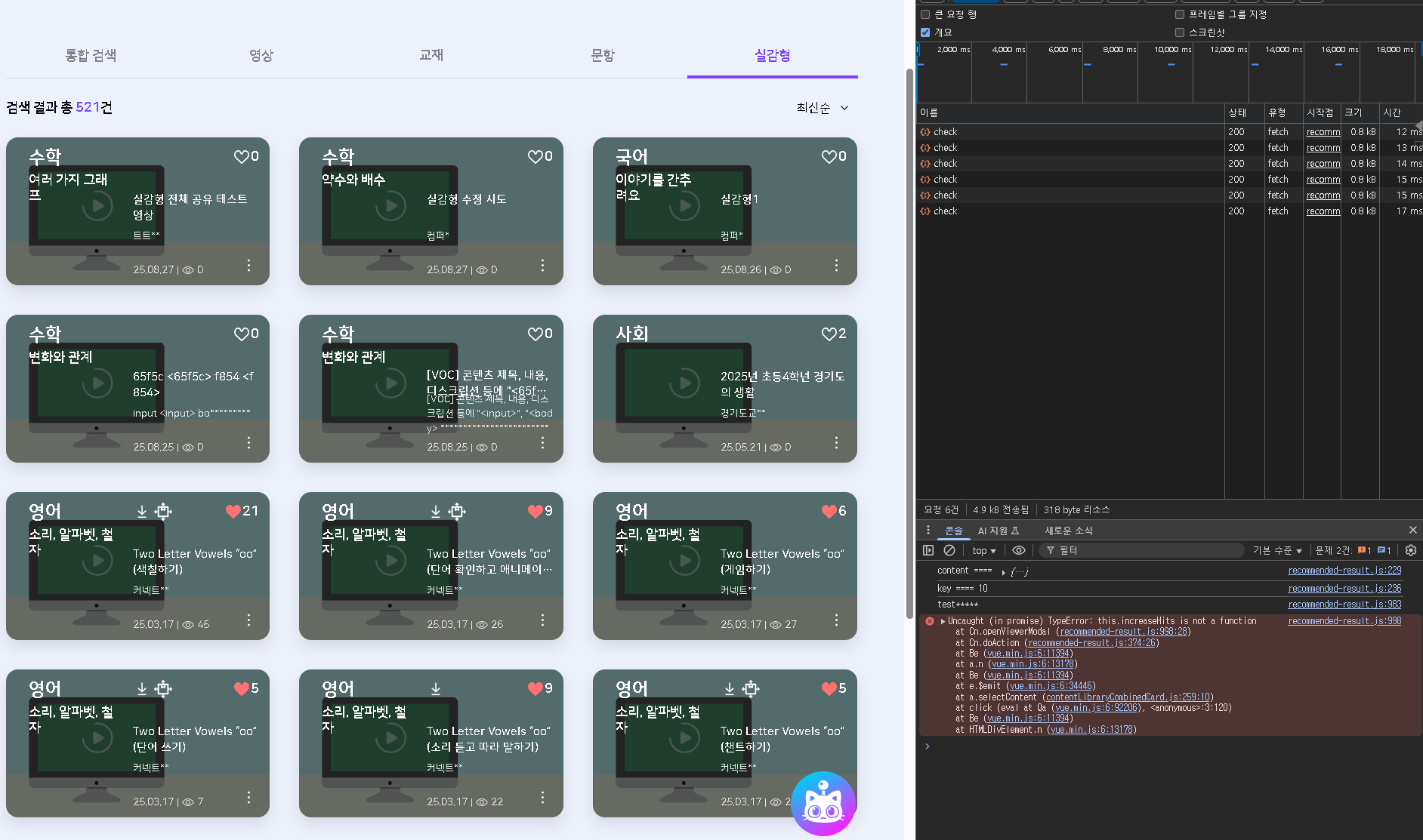 | Description | 추천 콘텐츠 - 실감형 콘텐츠 클릭시 반응 없음 클릭시 반응 없고 console.log에 error 노출되는 상황입니다. 내 콘텐츠 - 실감형은 정상 동작합니다. | ||||