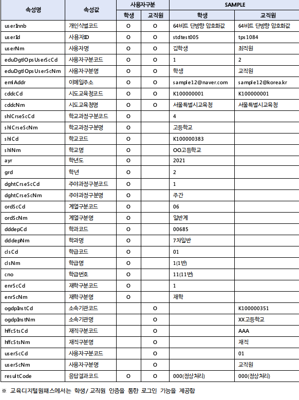 해당 값들은 원패스에서 반환한 값을 그대로 사용 하는 것이므로 하이러닝 보안과는 무관한 것으로 보입니다. 그리고 mbrId 필드에는 번호가 마스킹 되어서 특정 학생을 지정할 수 없습니다. 확인 부탁드립니다. |