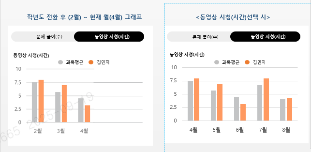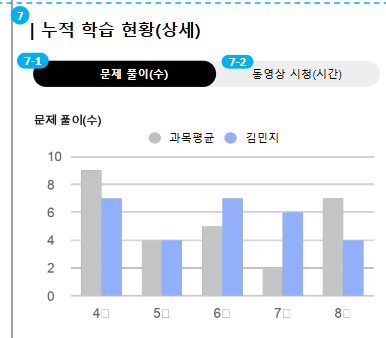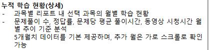 - 과목별 리포트 내 선택 과목의 월별 학습 현황