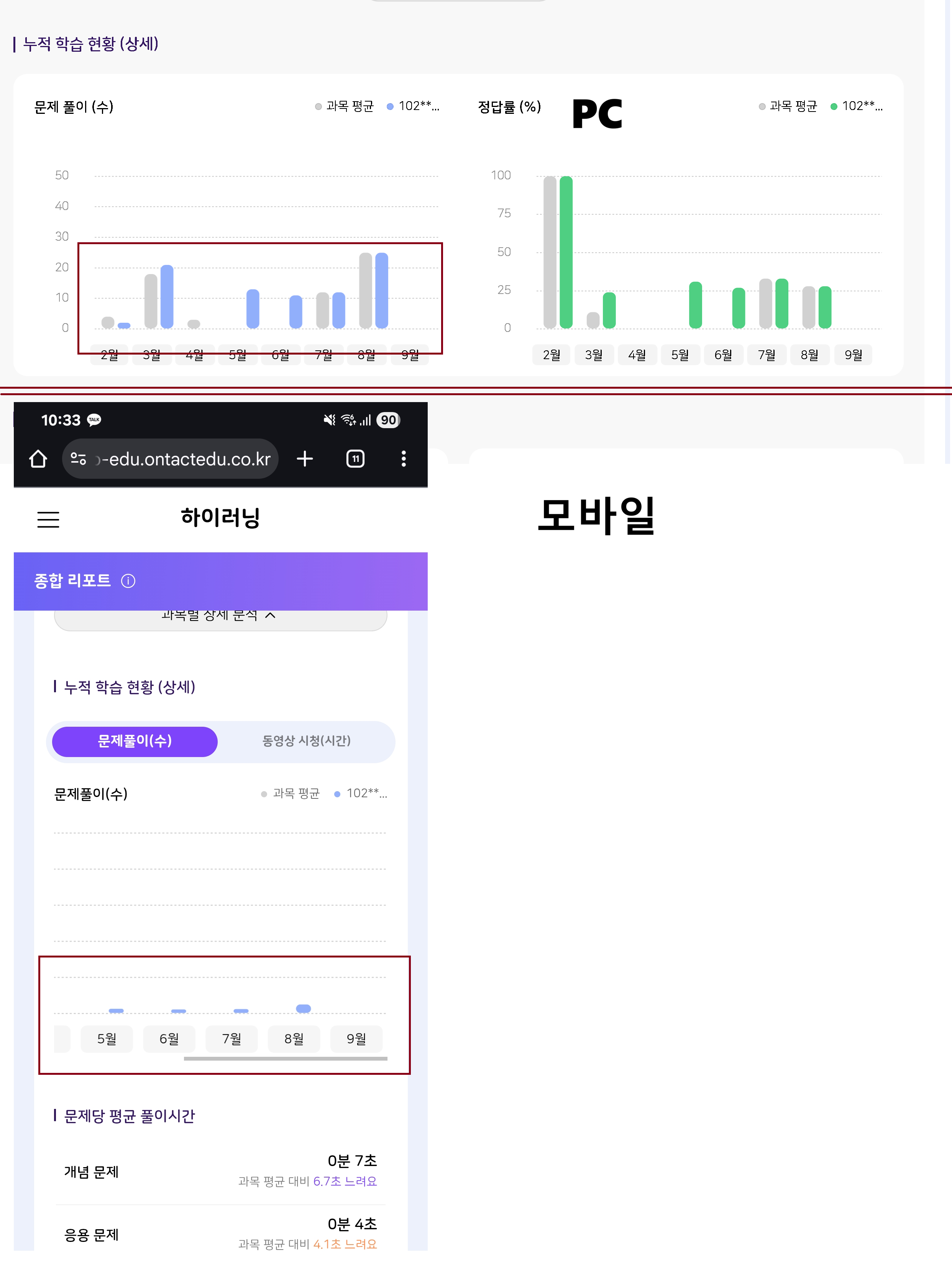 | Steps To Reproduce | 모바일 : 학부모 > 종합 리포트 > 누적 학습 현황 그래프 응시 | ||||
