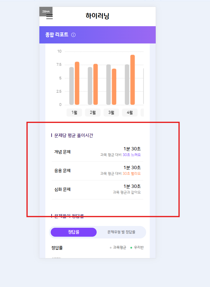| Steps To Reproduce | 1. 모바일 학생/학부모 로그인 2. 학생/학부모 종합 리포트 > 문제당 평균 풀이시간 | ||||