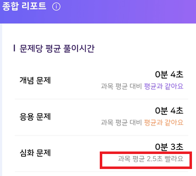 | Description | 모바일 : 학생/학부모 종합 리포트 > 문제당 평균 풀이시간 문구가 기획과 상이 | ||||