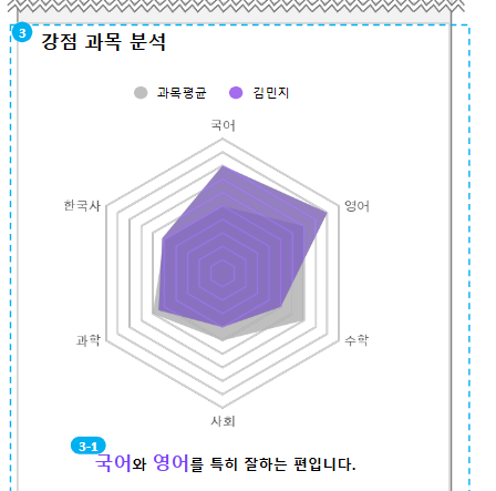 | Description | 학생/학부모 : 종합 리포트 > 강점 과목 분석에 '과목 평균' 범례가 없는 현상 *PC가 이슈, 모바일은 '과목 평균' 범례 노출 잘 됨 | ||||