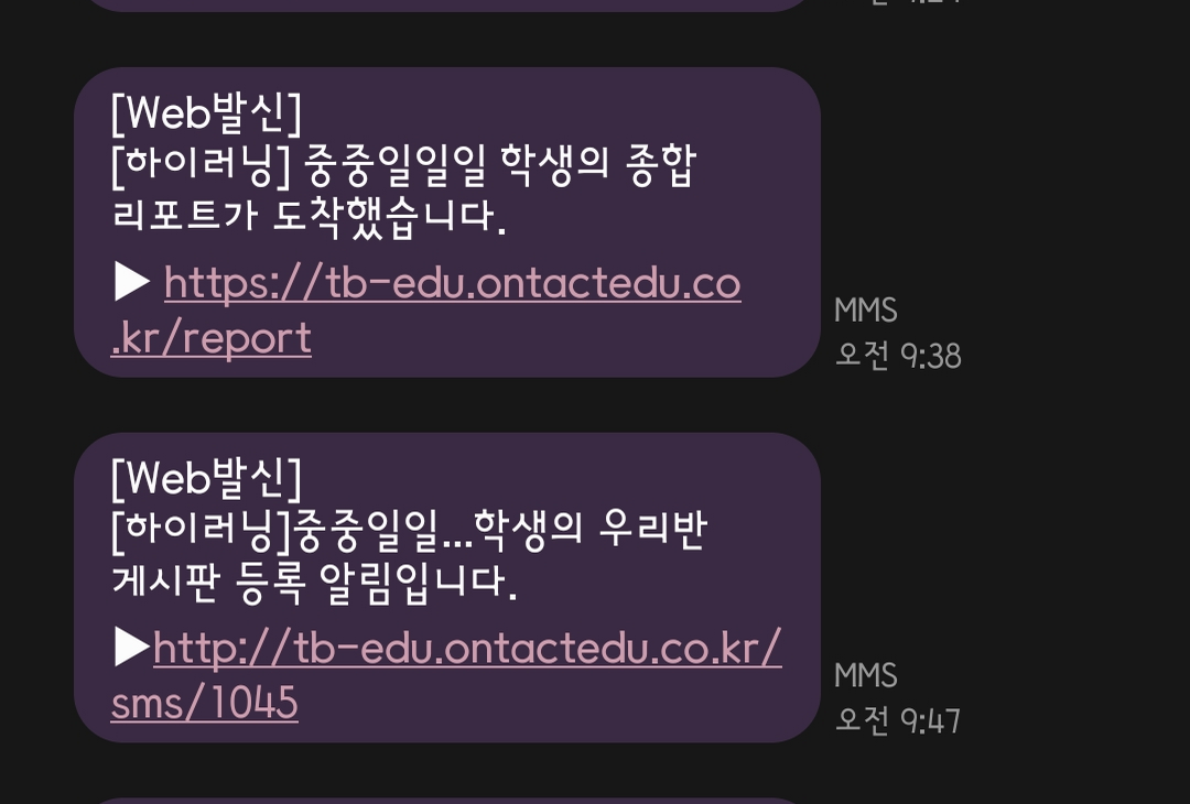 이슈1 : 90바이트 초과되어 mms로 전송 이슈2 : 링크 주소가 https://hi.goe.go.kr/report 가 아닌 https://edu.ontactedu.co.kr/report 로 전송 위 이유로 reopen 하겠습니다 |