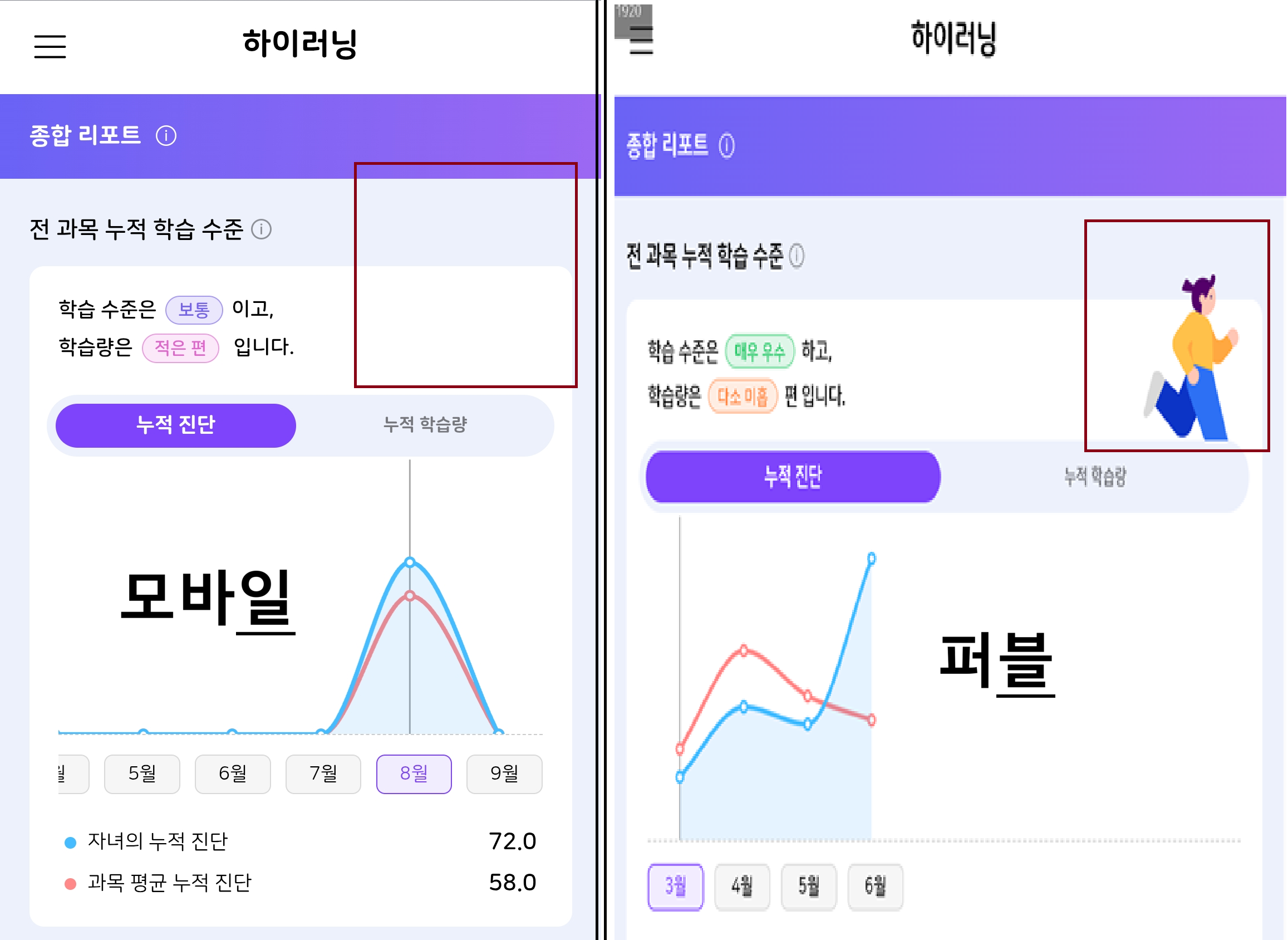 | Description | 모바일-학부모-종합 리포트 : 최 상단에 달리기 이미지 노출 안됨 퍼블에는 달리는 이미지가 있지만 모바일-TB에는 이미지가 없는 이슈입니다. | ||||